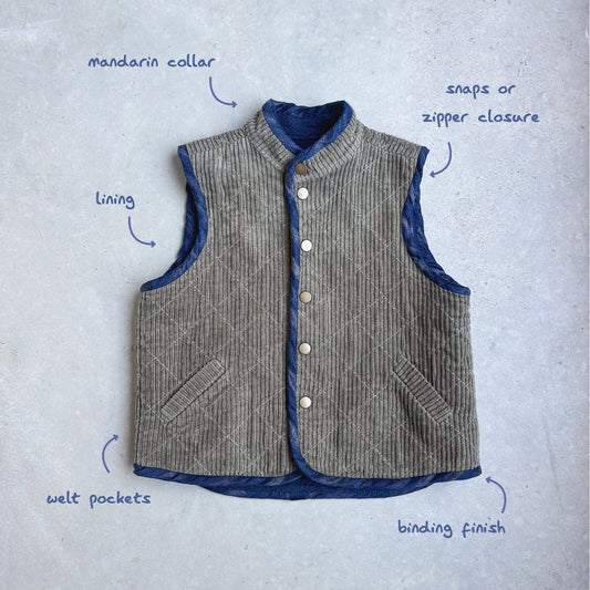 Nonni Vest Gender Neutral Kids (12mo-12yrs) PDF Sewing Pattern - Atelier Mimito