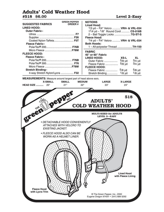 Adult’s Cold Weather Hood Pattern - 518 - The Green Pepper Patterns