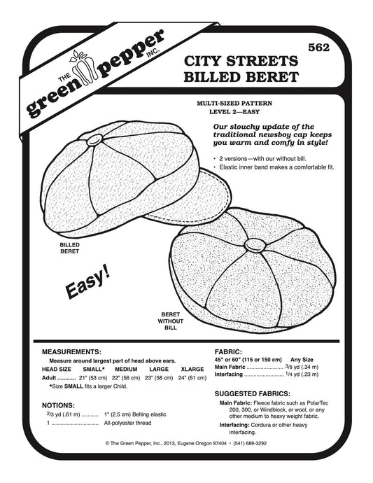 City Streets Billed Beret Pattern - 562 - The Green Pepper Patterns
