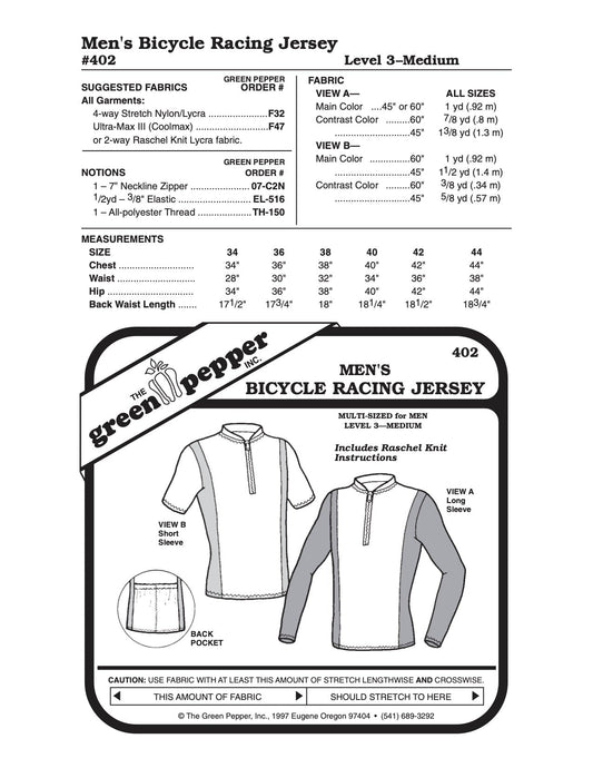 Men’s Bicycle Racing Jersey Pattern - 402 - The Green Pepper Patterns