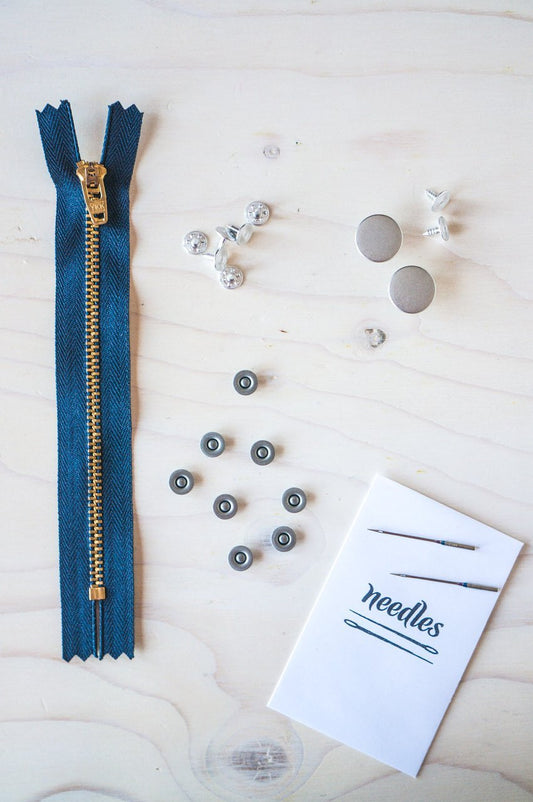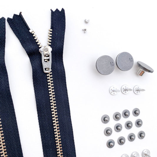 Regular price $35.00 CADRegular priceUnit price / perSale price $35.00 CADJeans Hardware Kit - Navy Zipper / Pewter Hardware - Kylie And The Machine