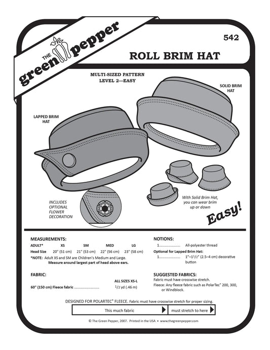 Roll Brim Hat PDF Pattern - 542 - The Green Pepper Patterns