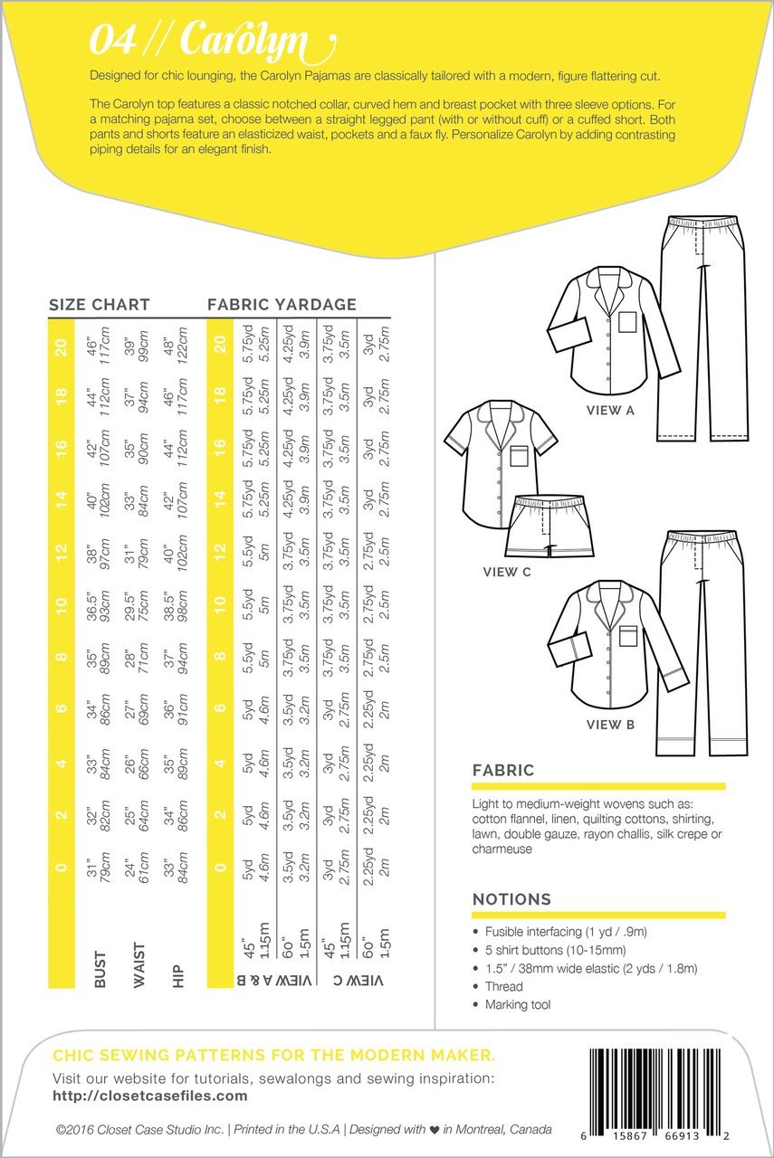 Carolyn Pajama Pattern - Closet Core Patterns