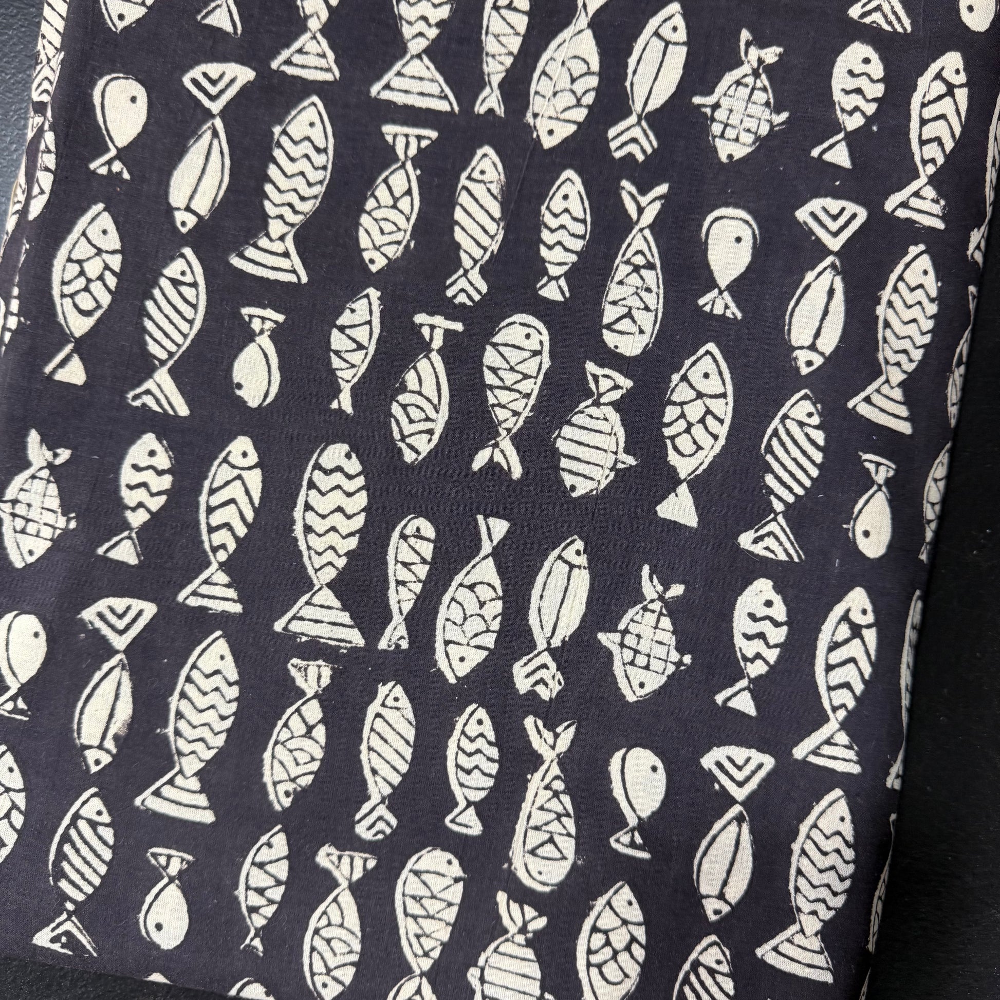 Fish School Black - Bagru Indian Cotton Block Print