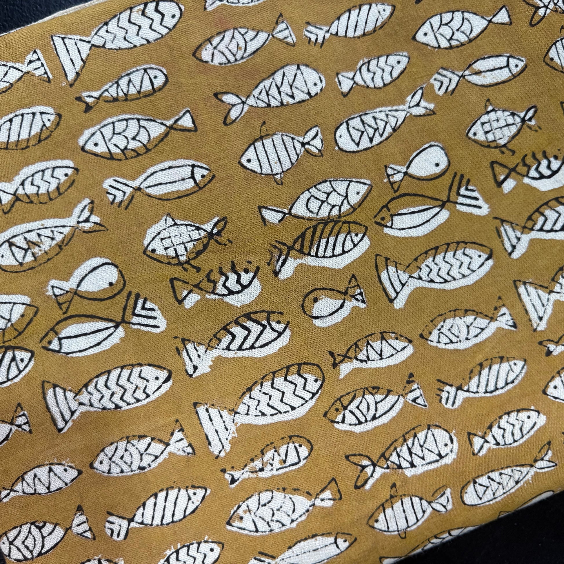 Fish School Ochre - Bagru Indian Cotton Block Print