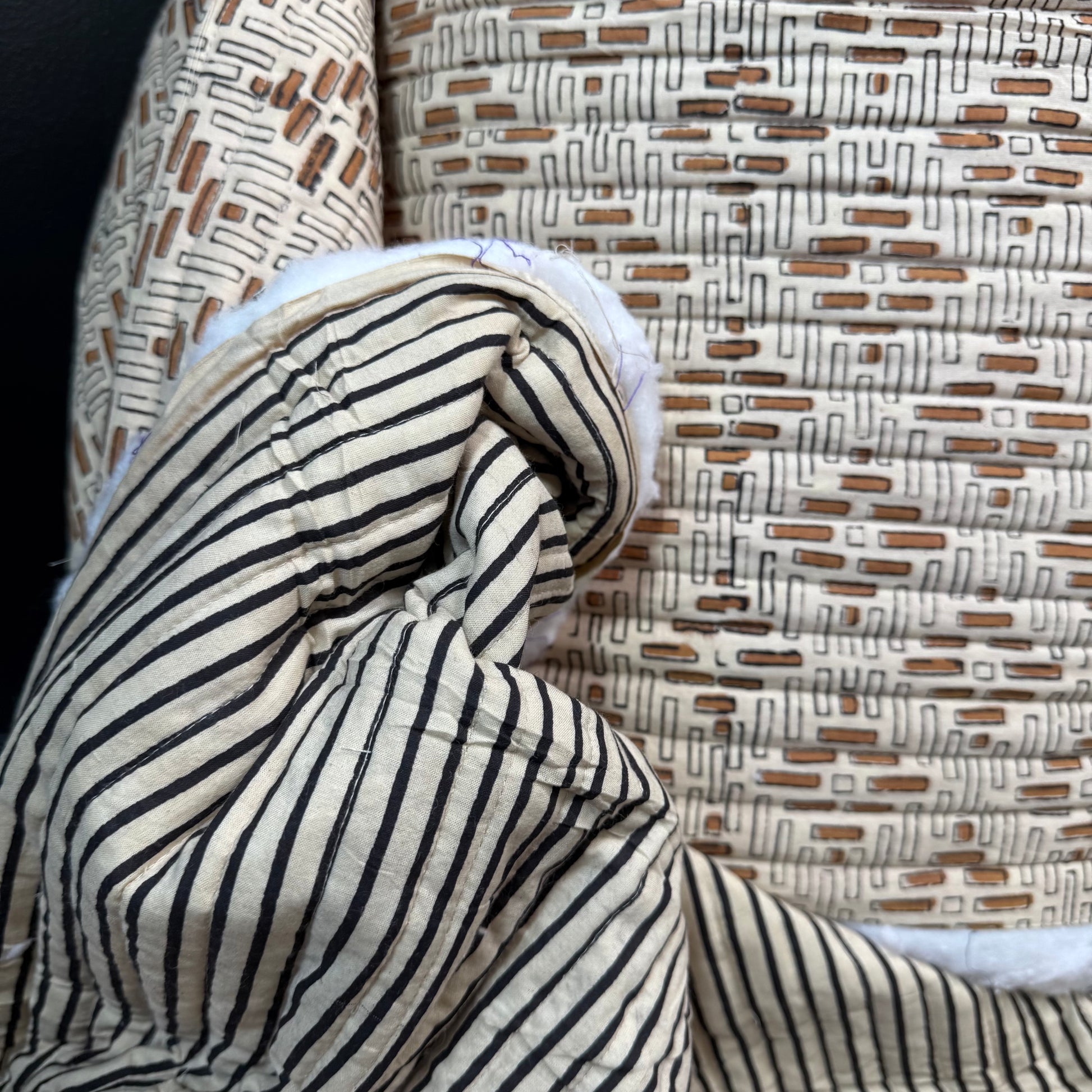 Golden Maze +Charcoal Stripe - Quilted Bagru Indian Cotton Block Print (Reversible)