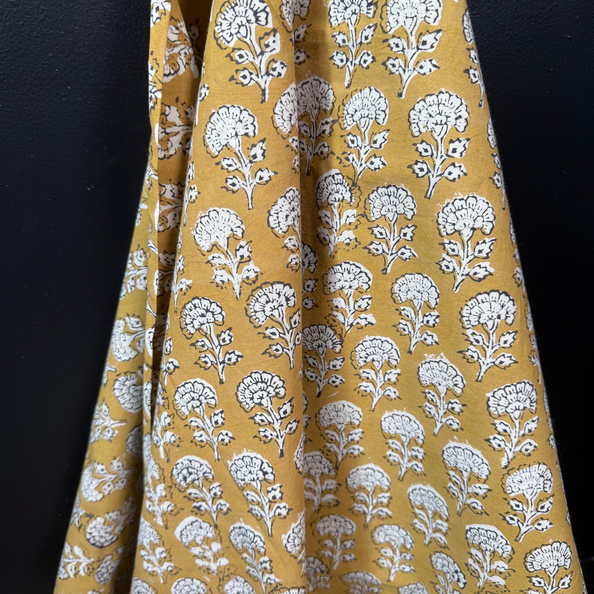 Harvest Bloom Mustard - Bagru Indian Cotton Block Print