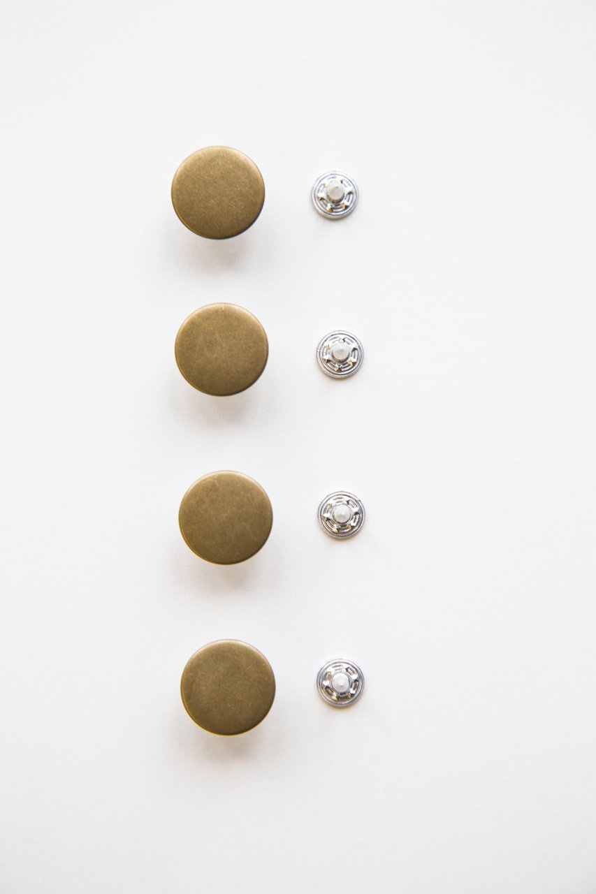 Put the finishing touch on your Jenny Overalls with our beautiful, custom-made hardware kit. Available in an antique brass or nickel finish, our high-quality buckles and buttons will lend a professional look to your dungarees. Be sure to add an extra set of buttons if you'd like to replace the hip zipper with buttons.