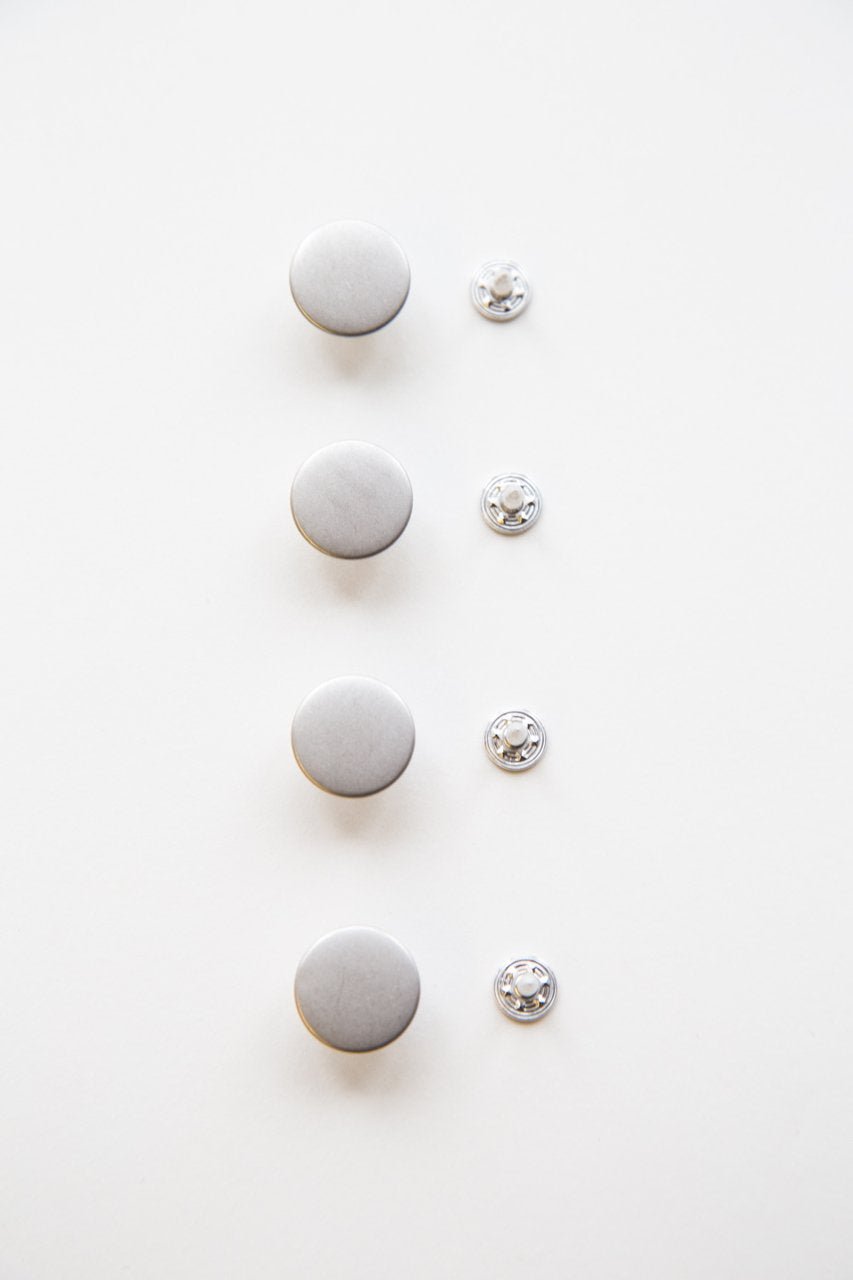 - Five x 17mm jeans buttons with sturdy, solid cap (includes enough buttons for the buckles, one at each hip on the waistband, plus one extra for practice)