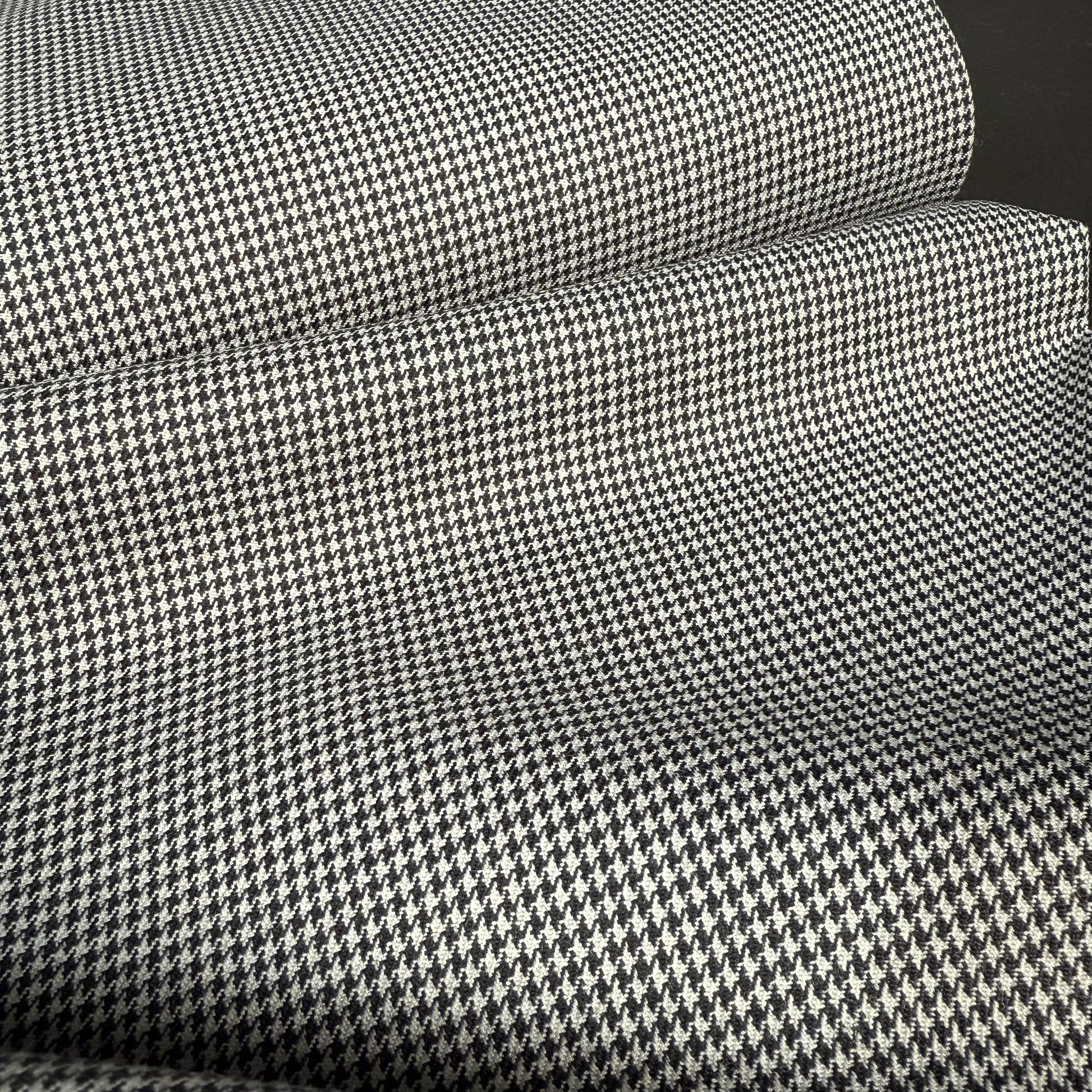 A forever chic classic , this micro houndstooth fabric brings the spirit of tailored luxury into everyday making. Rich black and soft ivory are woven into a clean pattern that feels polished, versatile and effortlessly stylish. Sophistication without fuss.