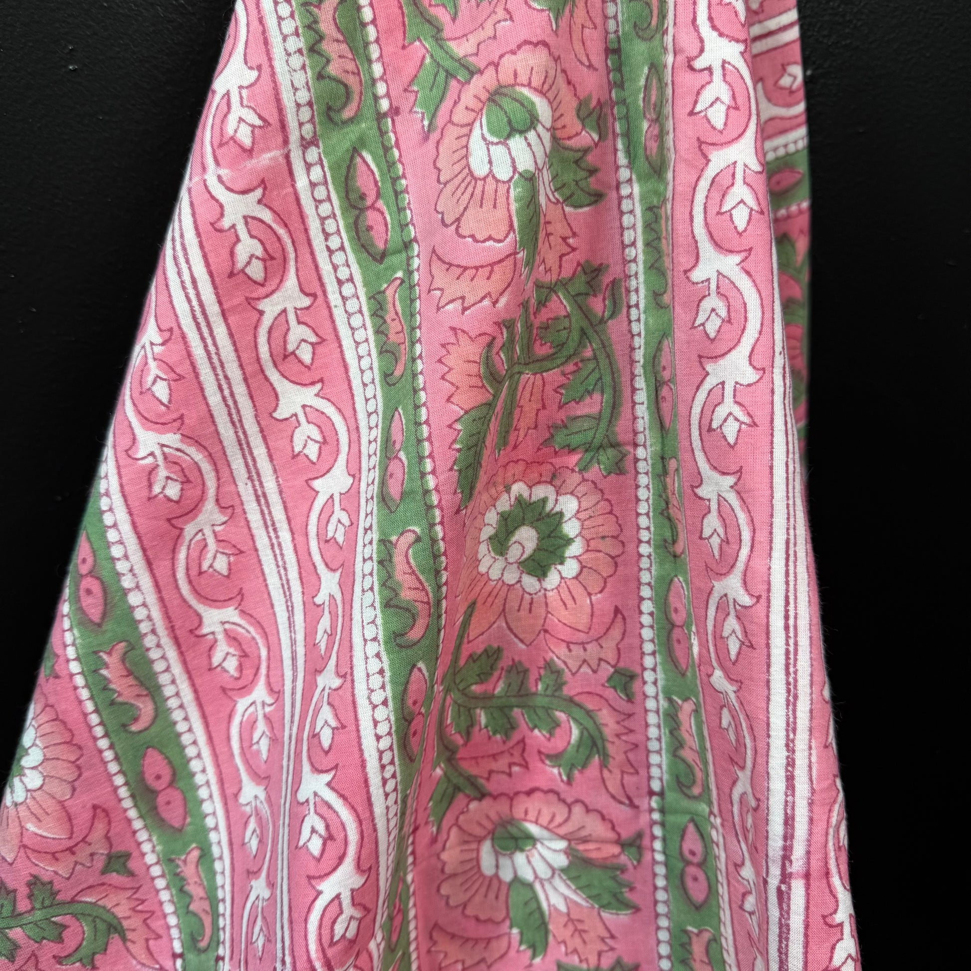 Petal Path Stripes Pink - Bagru Indian Cotton Block PrintHB154