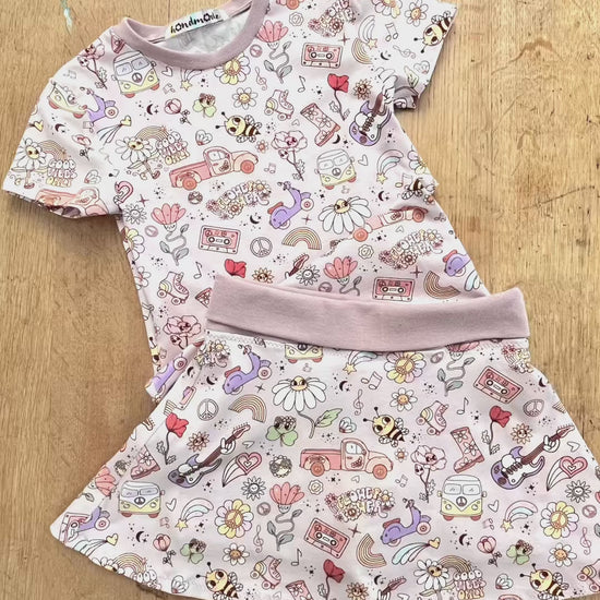 The most practical of children's patterns: make shorts, a flippy skirt, or combine them for a handstand approved skort. A wide yoga style waistband makes this a super comfortable item of clothing. Paired with a super practical basic tee for a full outfit.