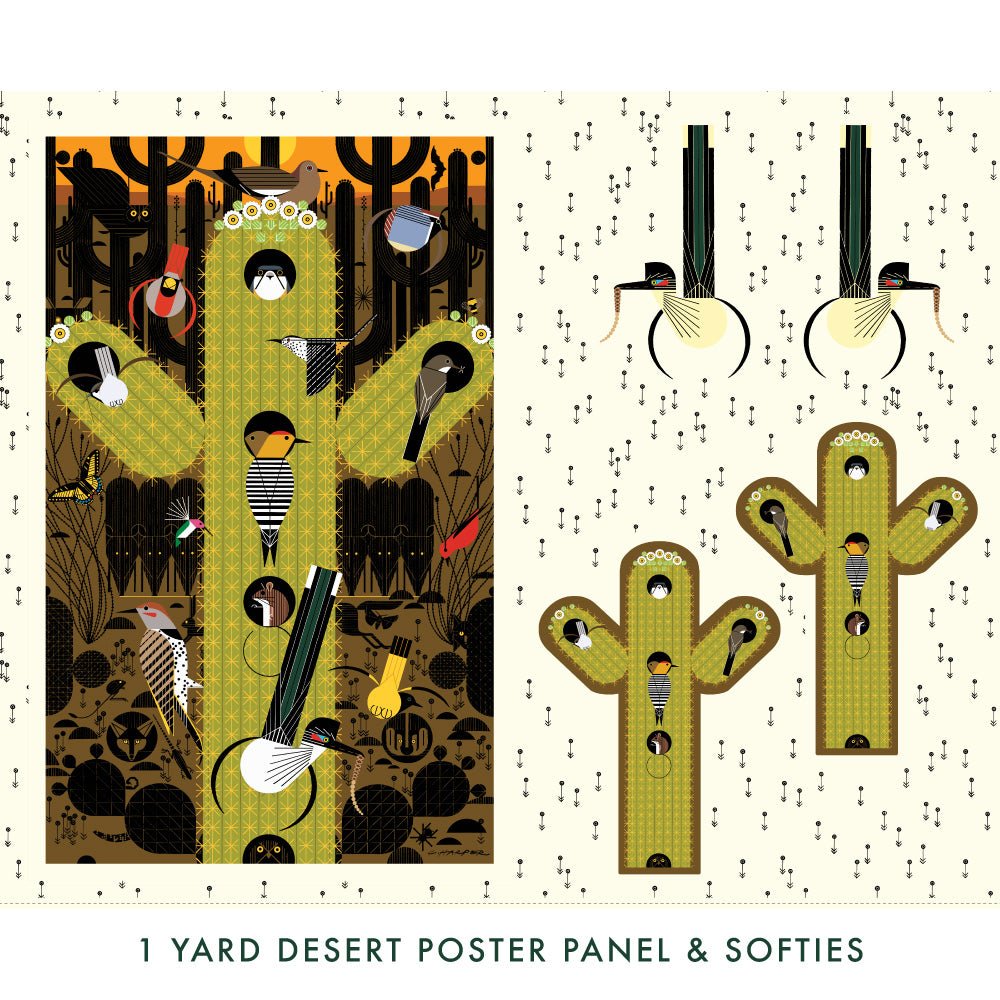 The Desert Poster And Softies Panel - Charley Harper The Desert - Birch Fabrics - Poplin (sold per 34" panel)