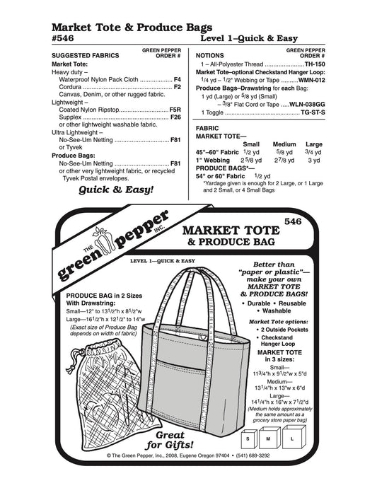 Market Tote & Produce Bag Pattern - 546 - The Green Pepper Patterns
