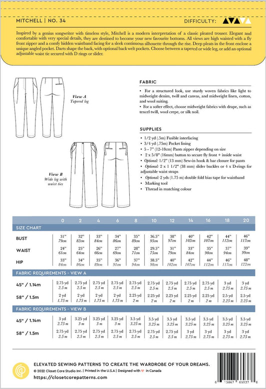 Mitchell Trouser Pattern (0-20) - Closet Core Patterns