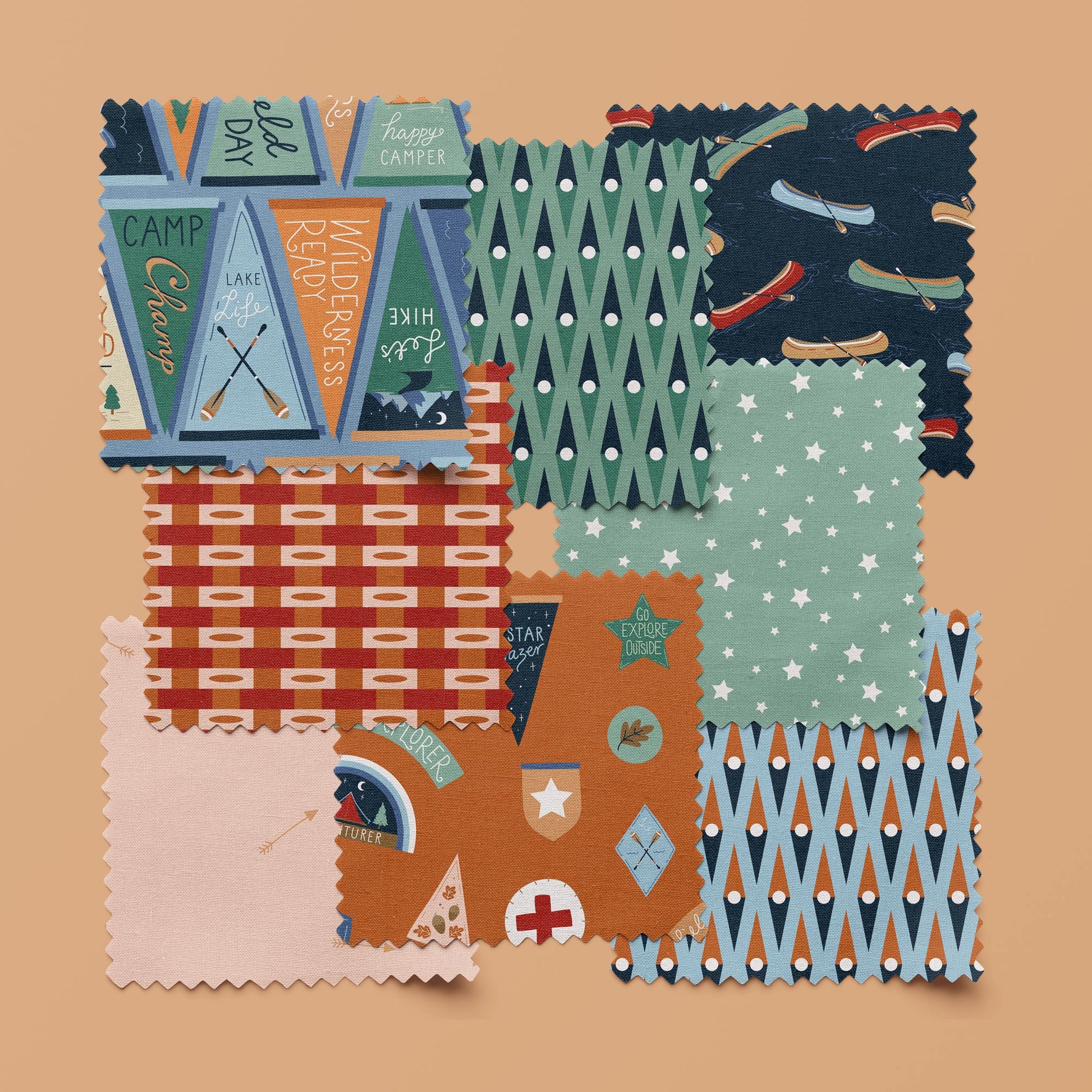 Field Pennants - Blue - Backwoods and Boots - Softly Studio - Cloud 9 Fabrics - Poplin